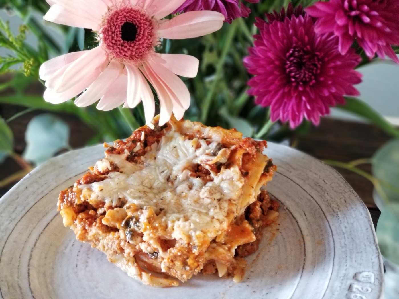Heat a medium pot of water for the lasagna noodles, add in the tablespoon of oil into the water till it comes to a boil. Once the water is boiling, cook the lasagna noodles according to the package. Once done, strain and set a side till we are done with the sauce.