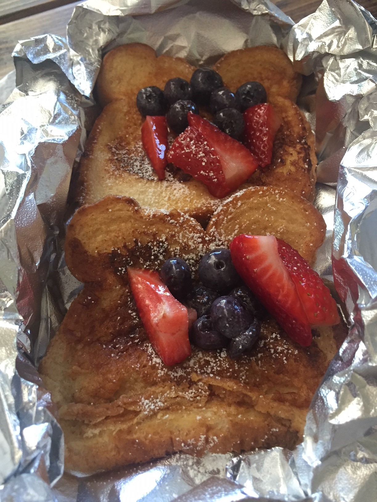 Put the packs on the grill, close the lid and cook for 5 minutes. Turn the packets over, close the lid and grill 5 minutes more. Remove and let rest for a few minutes. Carefully open the packets (hot steam will escape). Both sides of the French toast should be browned and the center should be custardy. Keep in the packets or transfer to plates. Top each serving with 1/4 cup of the berries and more maple syrup, if desired.