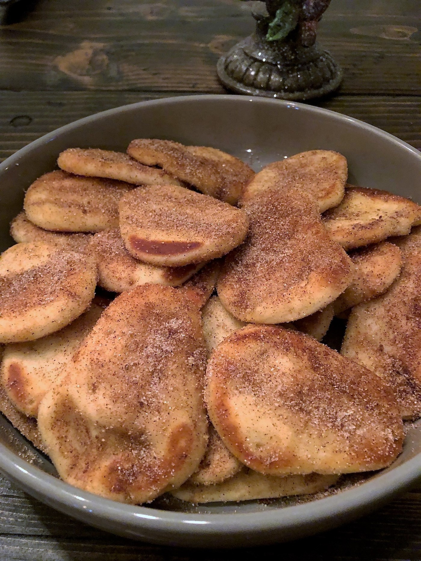 Sprinkle with cinnamon sugar and toss until they are coated on both sides.