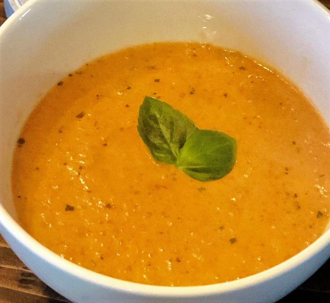 After blending, transfer back to pot, turn to medium low heat and add in oregano, vegetarian broth and salt and pepper to taste. From there you can add in any additional add-ons. I added 1 cup of heavy cream for a cream tomato soup. Allow tomato soup to simmer 10 minutes before serving. To serve, garnish with parmesan cheese and serve with grilled cheese or French bread, if desired. Serves 4.