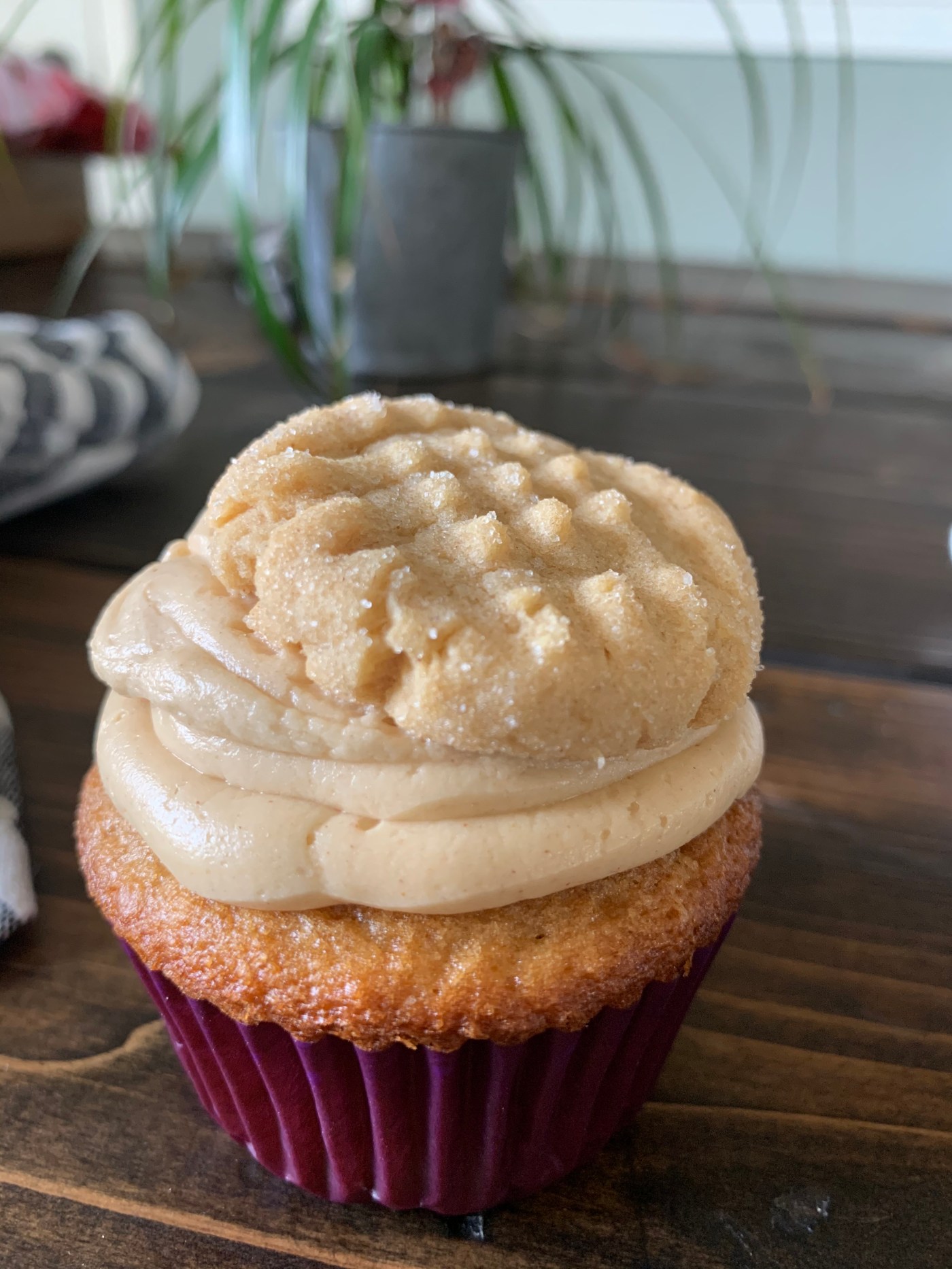 I topped each cupcake off with a Peanut Butter Blossom minus the chocolate kiss! Optional, not a must!