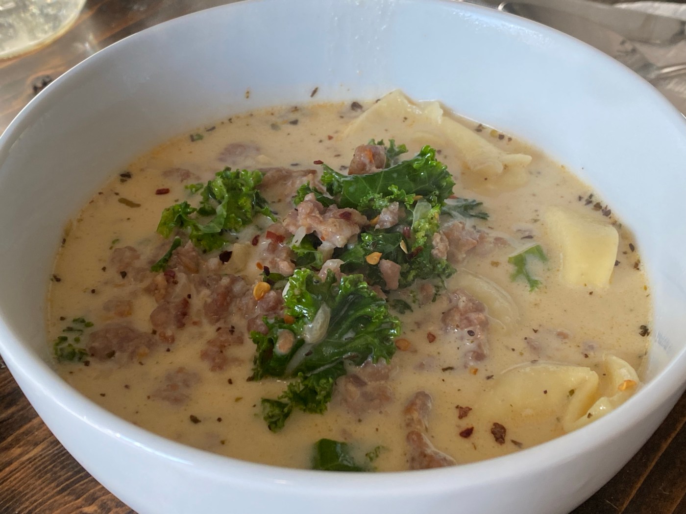 Add the kale and tortellini and simmer for 3-5 minutes. (If your tortellini needs longer cooking time, add the tortellini first, then the kale during the last 5 minutes.)
