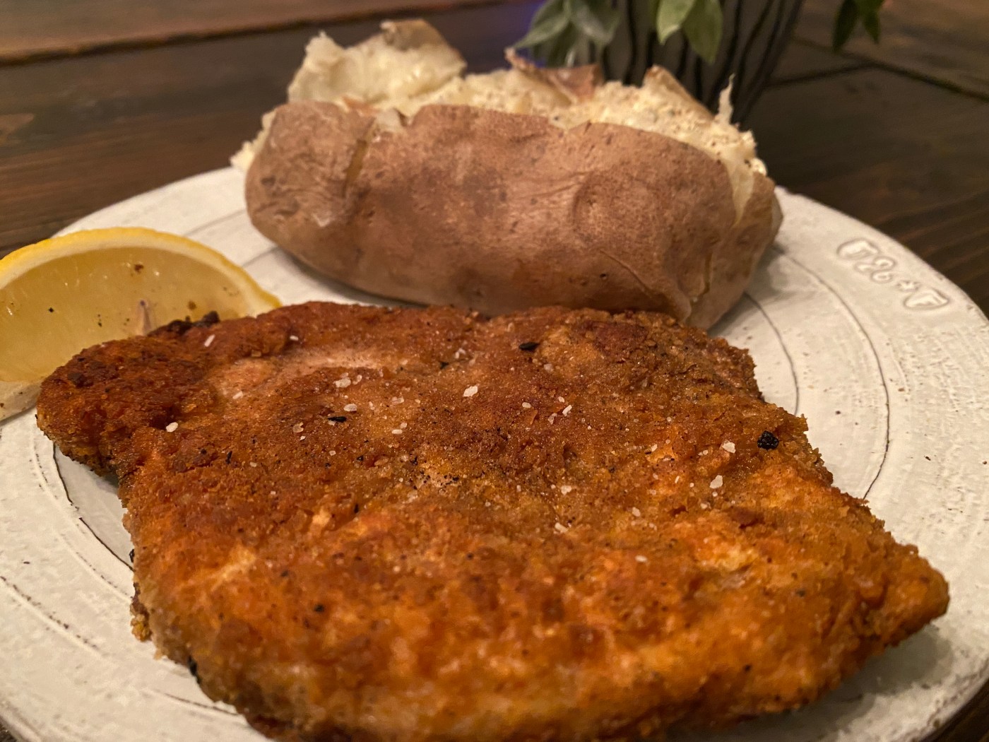 A simple version of Pork Schnitzel and a creamy cheesy potato!