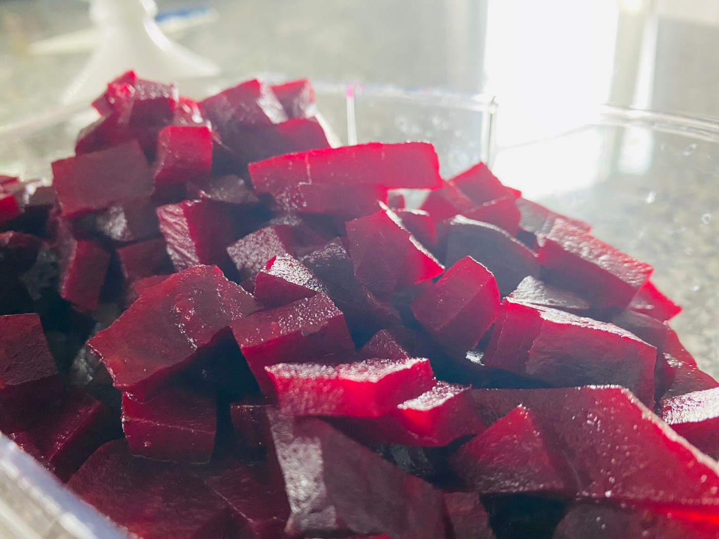 Wash the beets. Trim off all but about 1 inch of the beet greens.