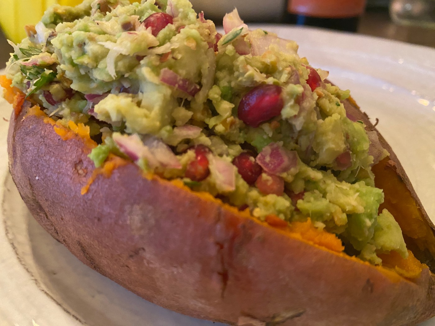 Top each sweet potato with plenty of pomegranate-pistachios guacamole, and shamelessly dig into your superfood sensation.
