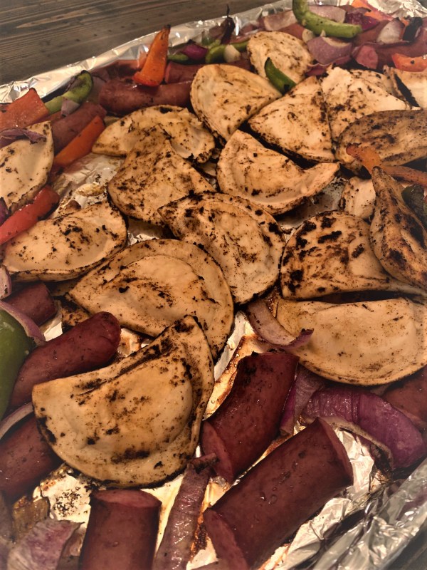 Kielbasa and Pierogies Sheet Pan