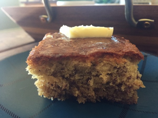 Not heavy and dense like banana bread, more light and airy like cake! Super yummy!