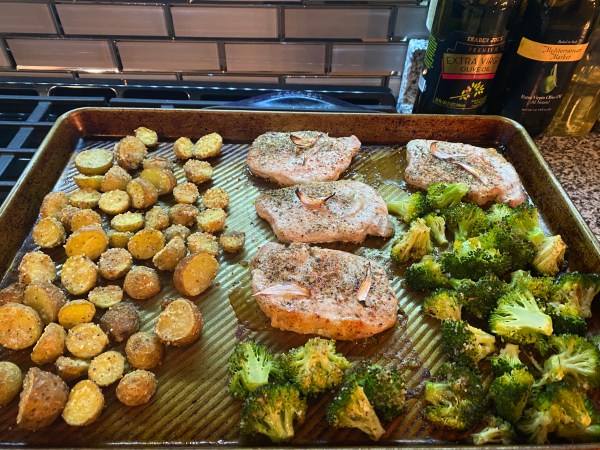 Continue reading “Pork Schnitzel with Cheesy Potatoes”Sheet Pan Pork Chops with Potatoes and Broccoli